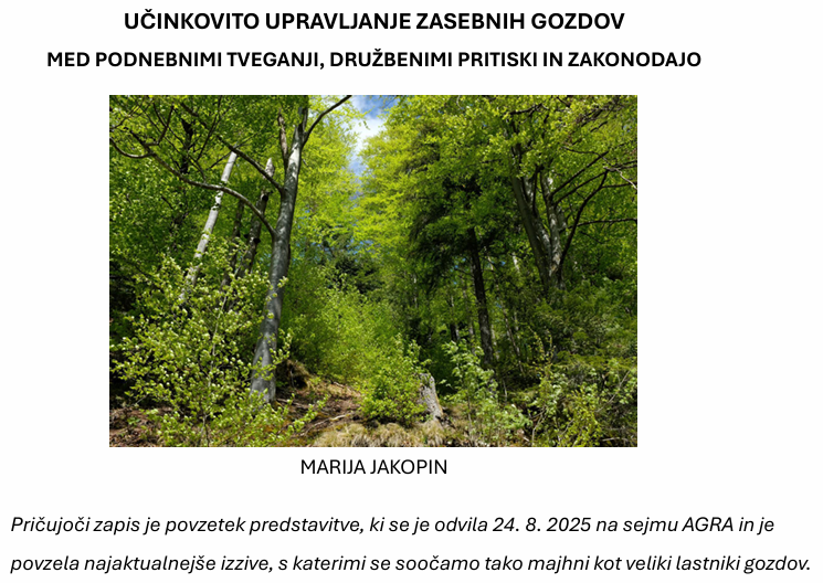 Marija Jakopin: UČINKOVITO UPRAVLJANJE ZASEBNIH GOZDOV - Med podnebnimi tveganji, družbenimi pritiski in zakonodajo
