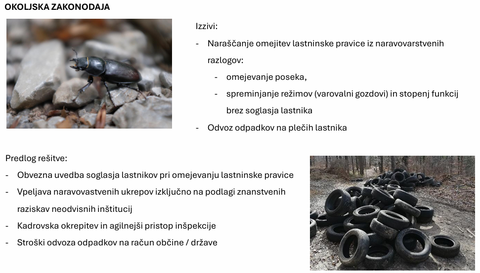 "Danes smo tukaj na posvetu zbrani poleg lastnikov gozdov še strokovnjaki MKGP, ZGS, Inšpektorat za gozdove, stanovske organizacije lastnikov gozdov KGZS in ZLGS na enem mestu in ob eni najpomembnejših tem-Aktivno gospodarjenje z gozdovi, kar me izredno veseli. Verjemite mi, da je to velik dosežek našega dela ZLGS v preteklih 10 in več letih, da skupaj z našimi partnerji iščemo strokovne rešitve. Rad pa bi poudaril, da zaenkrat še nismo uspeli argumentirano prodreti na nivo odločevalcev in politike in tudi ne prepričati večinskega dela slovenske javnosti o prepotrebnih spremembah zakonodaje glede na vse izzive in upravičene predloge nanizane v tem predavanju. Tu nas pa čaka še veliko resnega dela."
